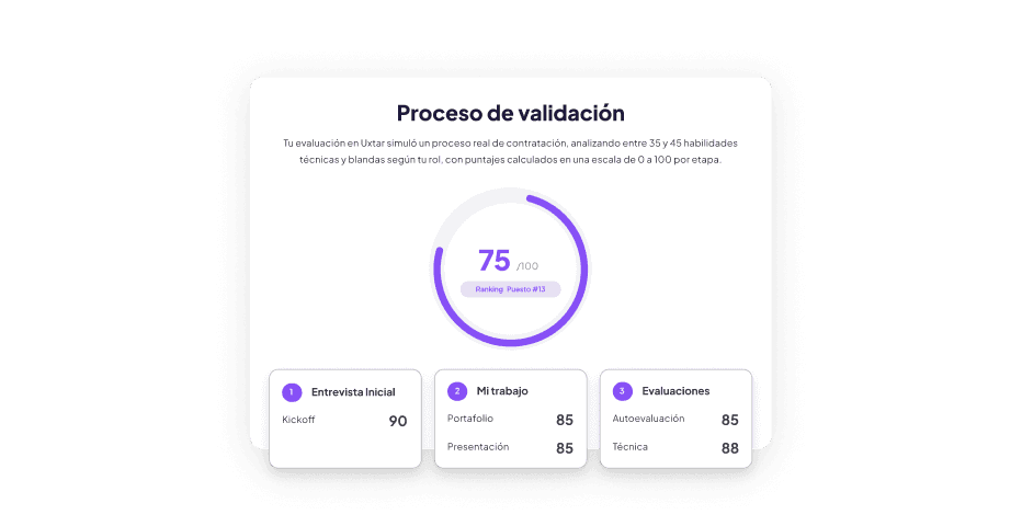 Un proceso diseñado para conocer tu trayectoria en menos de 30 minutos. Sin costo y con feedback en cada etapa.